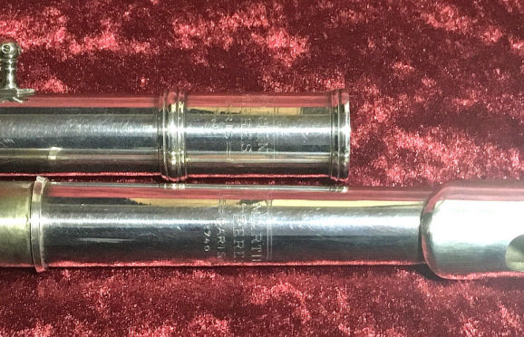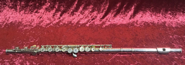 フランスの伝統ある楽器メーカー、マルタン・フレール(Martin Freres)による洋銀製フルートです。正にフレンチフルートの音色で、他の国の楽器とは一線を画す豊かできらびやかなとても魅力ある音色です。特に高音域はフレンチ独特の何とも言えぬ魅力があり、お勧めの1本です。タンポ、コルクなど交換済です。6枚目の写真にあるジョイントカバーが付きます。オリジナルではありませんが写真のハードケース付きです。