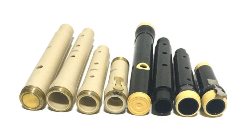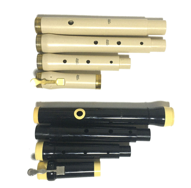 アウロス社製のプラスチック製トラヴェルソ2本組です。手作りのハードケース付きです。黒色は440Hzのグレンザー・モデルです。白色は415Hzのステンズビー・モデルで、ジョイント部のリングが金色になっています。オリジナルは銀との事で大変珍しい仕様になっています。2本まとめてなので個々には販売致しません。2本組での販売はなかなか無いものと思います。とても良い音で鳴っております。